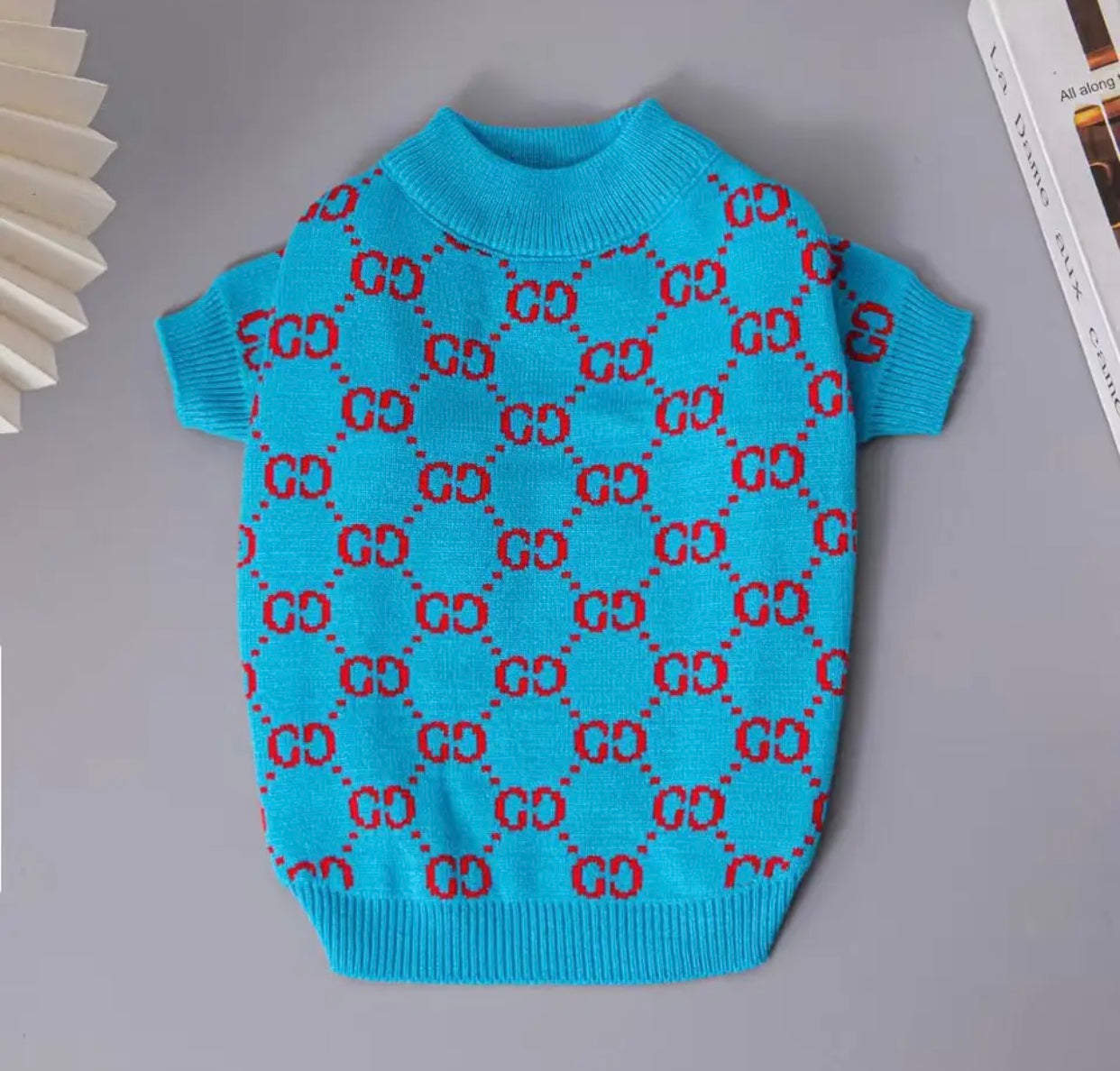 Blue Gigi sweater for dogs.