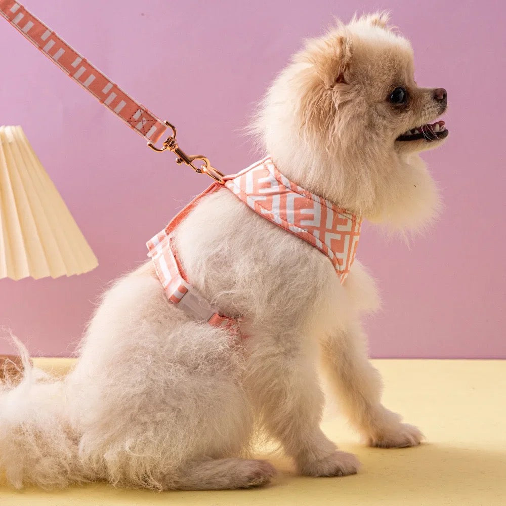 Furendi pink harness and leash set for dogs.