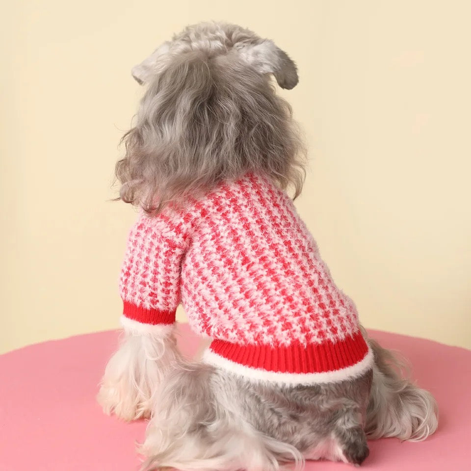 Red and white pattern sweater for your beloved pet.